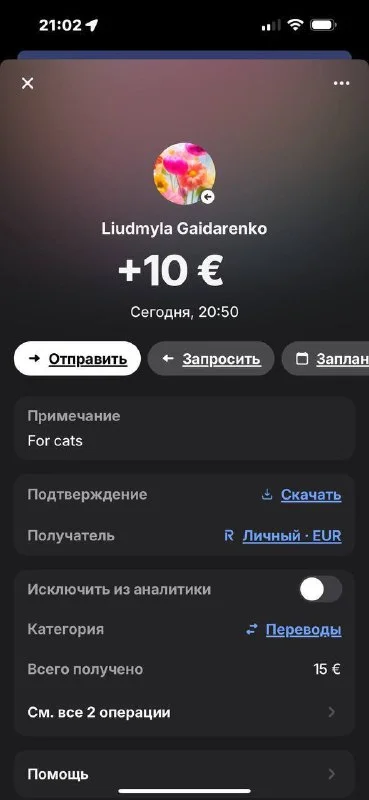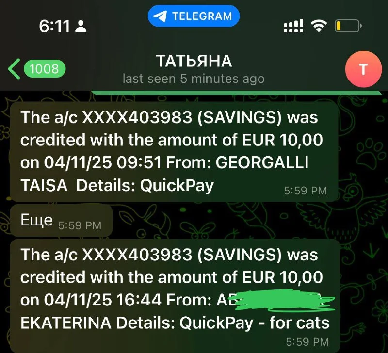 📲 Тег: @tetianljhr или 🔗 Ссылка на Revolut Татьяны
