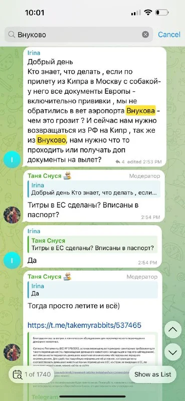 Здравствуйте, я еще до конца чат не прочитала за сегодняшний день. Но, кто Вам сказал что по прилету во Внуково нужно кому-то документы животного показывать ( ветконтроль)? Два раза прилетали , правда , в Домодедово с Кипра - ветконтроля от слова вообще никакого не было ! При вылете из мск, да, вктконтроль есть - но это совсем не связано с тем откуда прилетело животное.