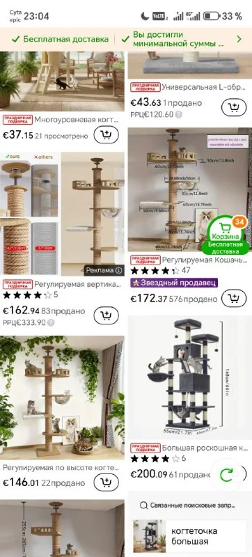 Смотрели скидки на петфуде и скрудже) ценник адовый за самые средненькие когтеточки)