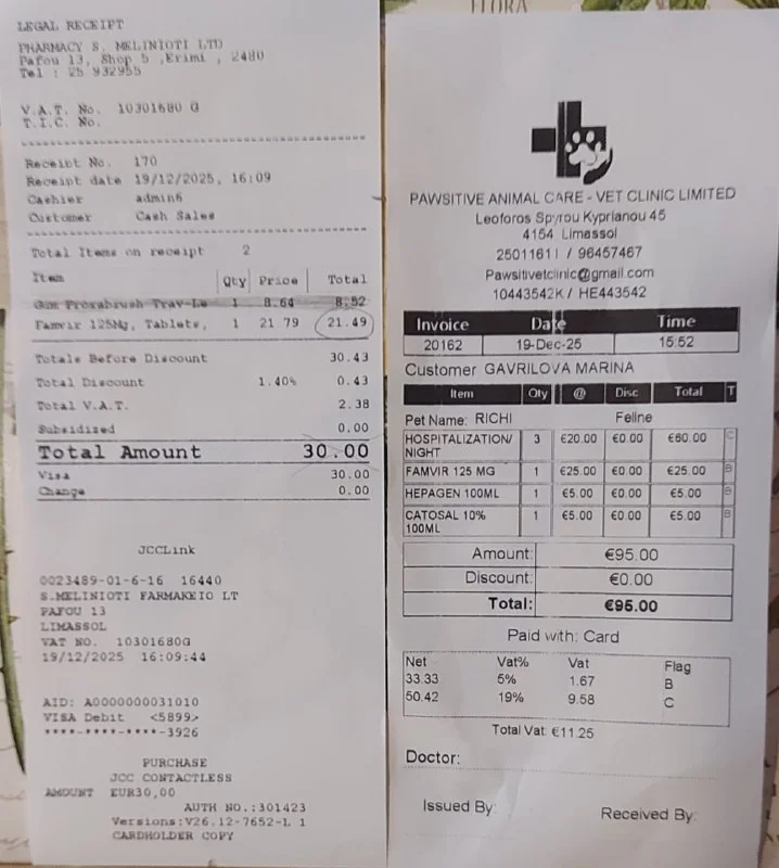 Взяли консультацию у троих врачей - в Зоокосмос, Саввас вет, и у доктора Вангелиса в 3vets.