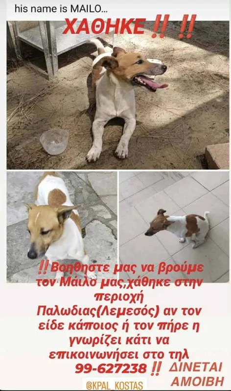 Добрый вечер всем! Сосед нашел щенка возле гипермаркета Папас (Лимассол)😢 чистый, ухоженный, но без ...