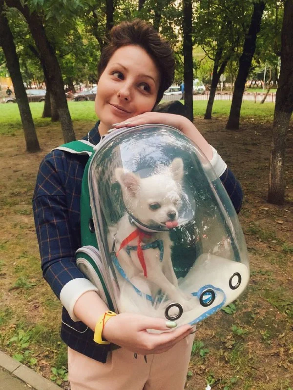 Я за мягкую сумку, дышать будет легче собачонку в самолете, чем в скафандре. И к телу сможете прижат...