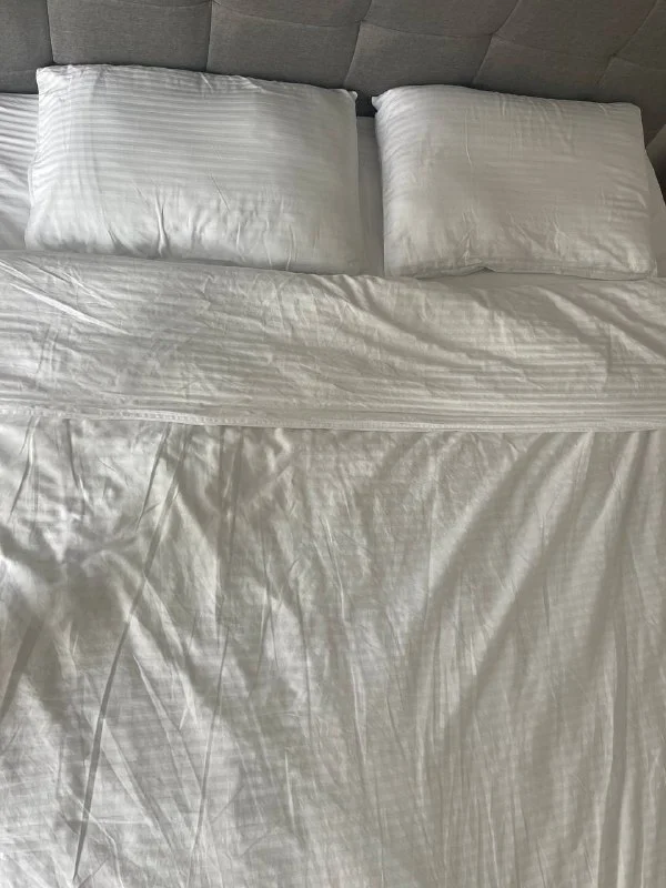 — светло молочное 2 набора: простыни на резинках 160*200(180), по 1 наволочке 50*70; по пододеяльнику 180*230. По 25€ за набор.