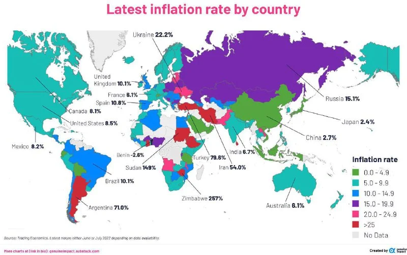 💴 Такая инфляция в разных странах мира в 2022 году