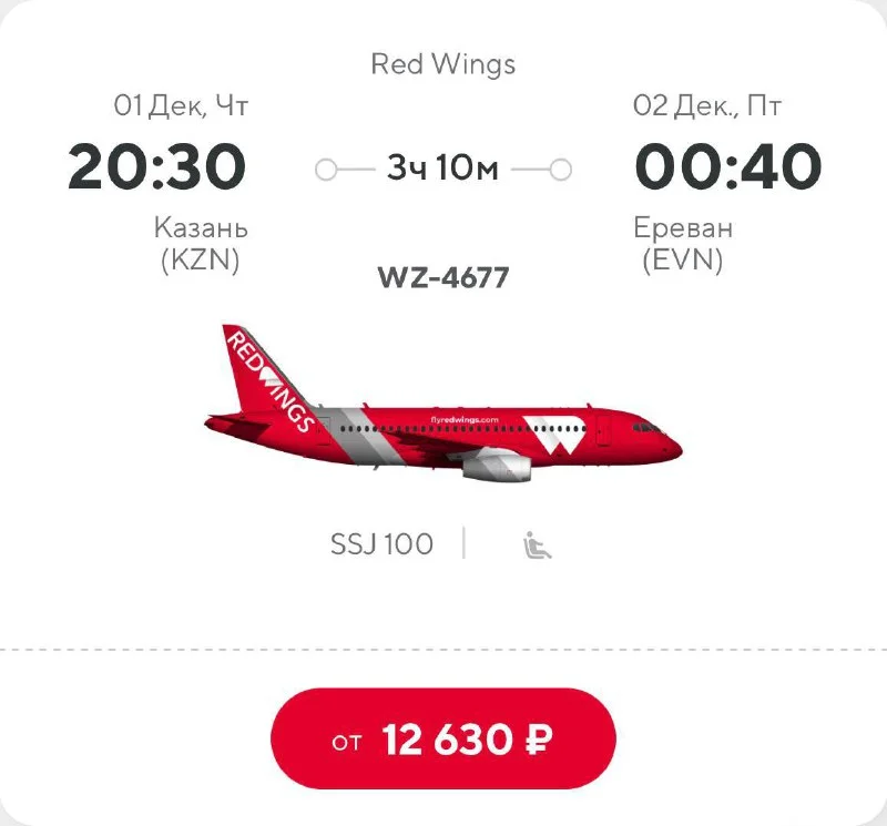 Авиакомпания Red Wings с 1 декабря планирует открыть рейсы между Ереваном и Казанью.