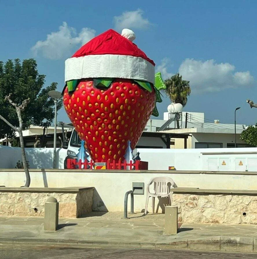 **Гигантская статуя клубники была установлена в Дериние в рамках подготовки района к Рождеству.