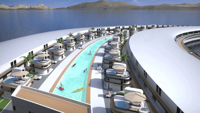 После завершения строительства «Пангеос» станет самым большим плавучим сооружением из когда-либо построенных.