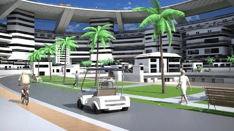Дизайнеры отметили, что футуристический плавающий город «в форме черепахи станет самым большим сооружением в мире из когда-либо построенных, так как его длина составит 550 метров, а ширина с учетом «ласт» черепахи достигнет 610 метров». Срок реализации составит восемь лет.