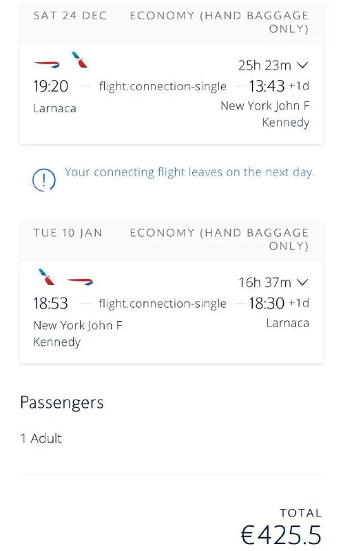 С 24 или 25 декабря по 10 или 11 января за 425€ в обе стороны. Везёт British Airways через Лондон!