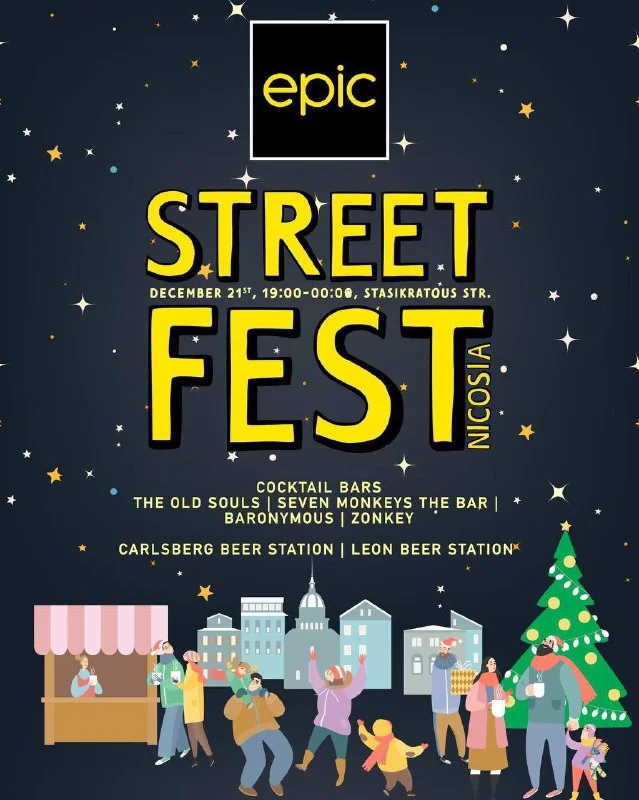 В среду Epic проводит свой 4 -й Street Fest Nicosia на улице Стасикратус, создавая праздничное настроение прохожим и гостям с 19:00. При поддержке муниципалитета Никосии и Deejay Radio на мероприятии будет много музыки, киоски с уличной едой, где приготовят горячие блюда, а также закуски и напитки в коктейль-барах.