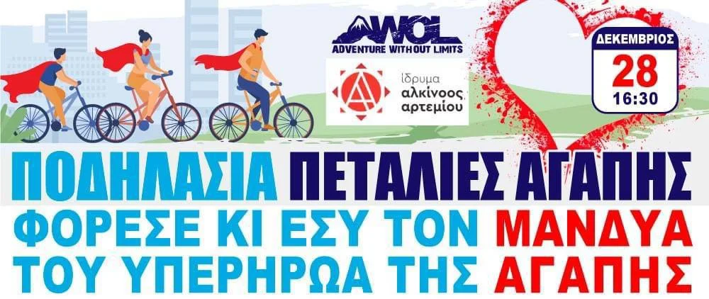 Магазин AWOL в сотрудничестве с фондом Alkinoos Artemios Foundation организует рождественский велопробег с целью повышения осведомленности и для поддержки детей с онкологическими и гематологическими заболеваниями.
