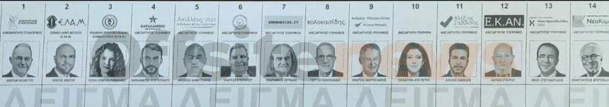 В бланке представлены 14 кандидатов в Президенты Республики Кипр.