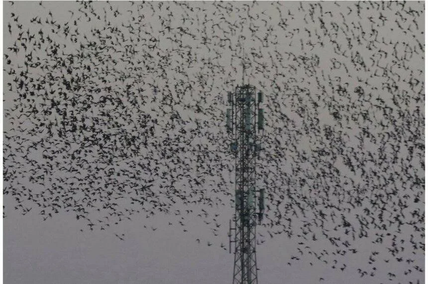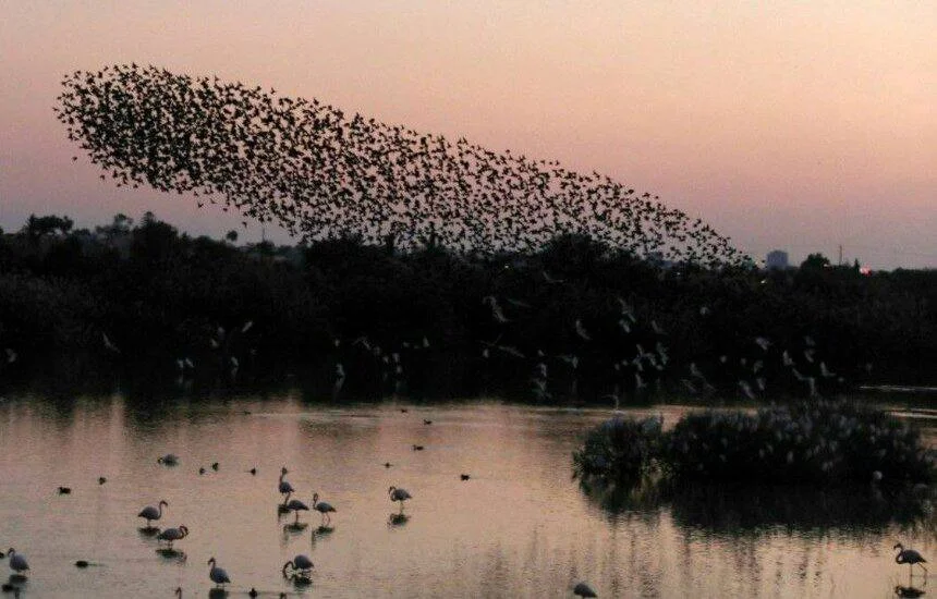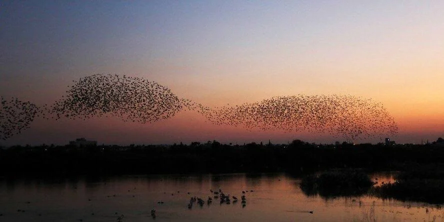 По интернету разлетелись уникальные фотографии, на которых запечатлены сотни скворцов над озером Ороклини.