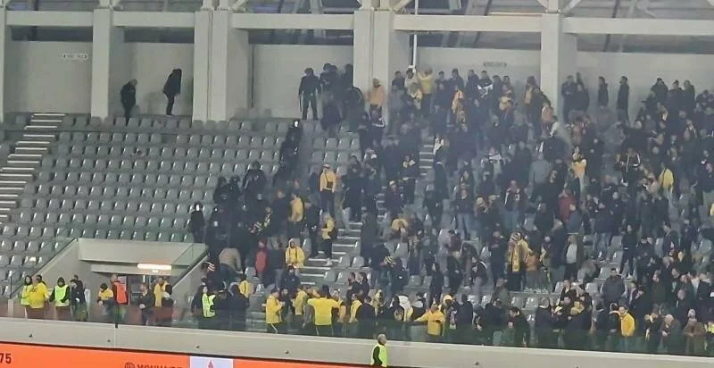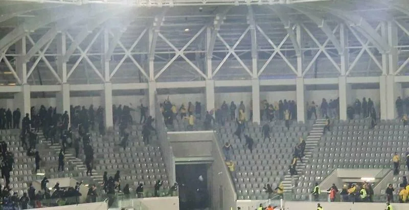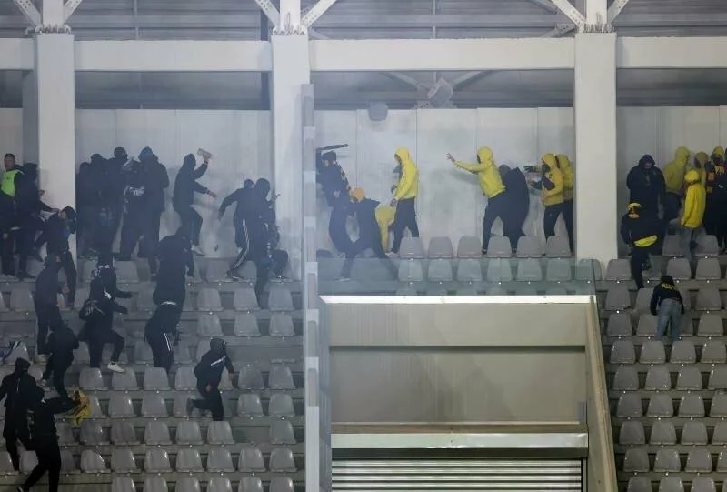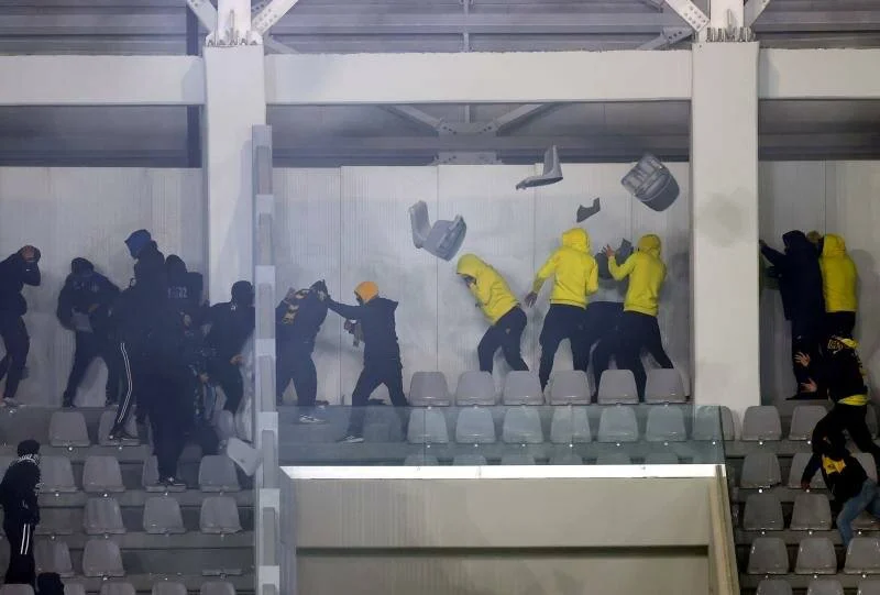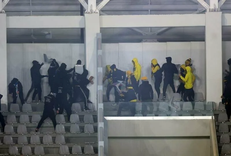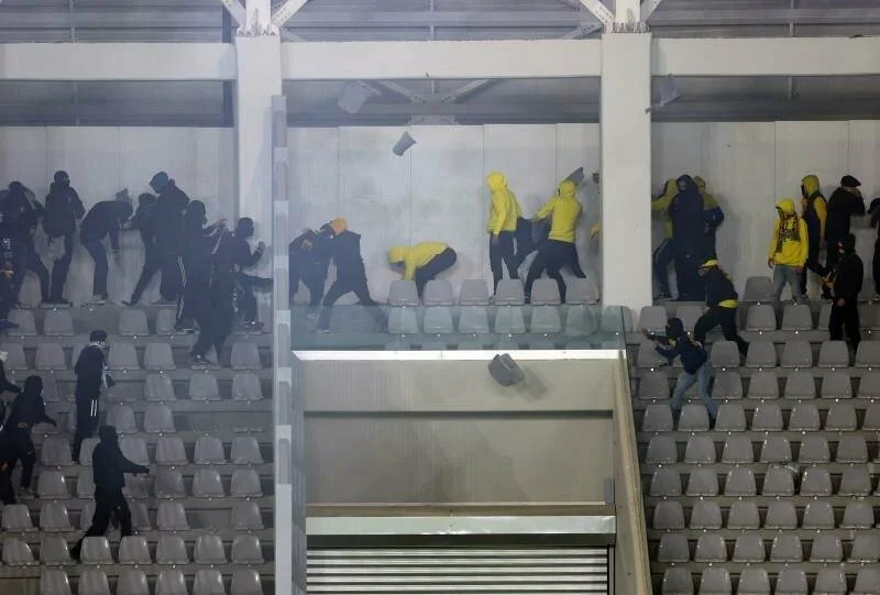 В Лимассоле нешуточные страсти разгорелись во время дерби АЕЛ — «Аполлон». В перерыве между таймами фанаты двух команд устроили «перестрелку» сиденьями. Данные эпизоды попали на видео.