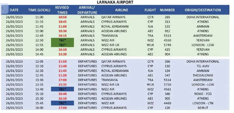 Также, аэропорт Ларнаки опубликовал список рейсов (на фото), на расписание которых повлияет забастовка - W64549 там не значится. Значит можно попробовать направить жалобу в авиакомпанию, так как согласно Регламенту ЕС 261/2004, если рейс задерживается более чем на 3ч., пассажир может претендовать на компенсацию. Информация по ссылке.