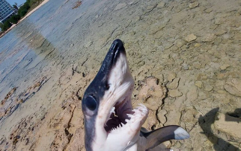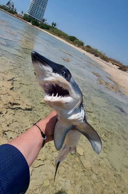 **Посетитель пляжа Марина-бич обнаружил у берега небольшую акулу. Рыба застряла между камней, но мужчина пришел ей на помощь и освободил. Речь идет о детеныше одной из акул Средиземноморья – акуле-мако (Isurus oxyrinchus).