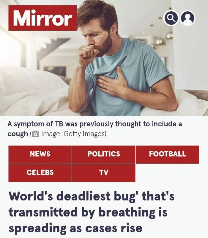 Речь про новый штамм туберкулёза, который передаётся бессимптомно — ни с помощью кашля, чихания, смеха, а просто потому что заражённый дышит.