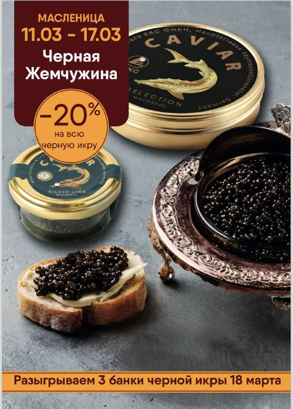 -20% на чёрную икру в банках по 50 гр, 100 гр, 200 гр