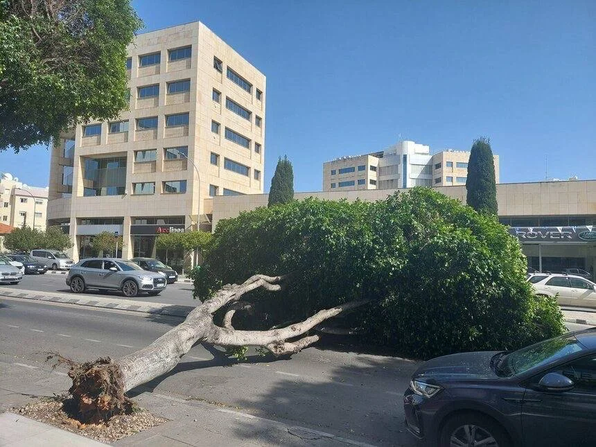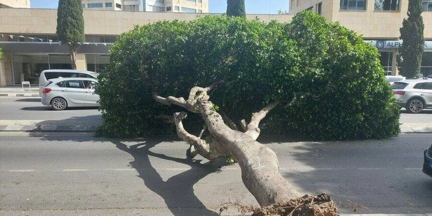 **🔊Улица Грива Дигени в Лимассоле оставалась закрытой более трёх часов из-за падения дерева.