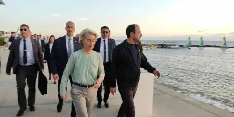🔊 Президент Кипра Никос Христодулидис и глава Еврокомиссии Урсула фон дер Ляйен совершили пешую прогулку по пляжу в Като Пафосе.