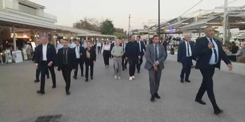 Они прошли несколько километров, наслаждаясь видами и купающимися людьми. Фон дер Ляйен была в элегантной блузке, а Христодулидис – в спортивном костюме.
