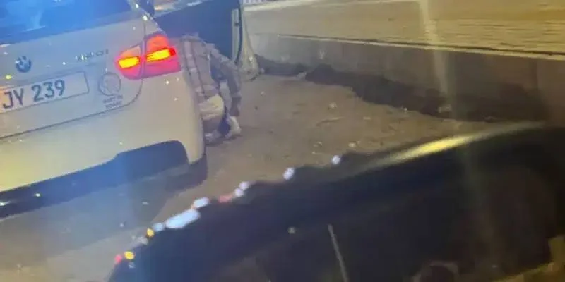 На Кипре, в Каравасе, водитель BMW, на заднем стекле которого была наклейка "Ребенок на борту", остановился на дороге и справил нужду.