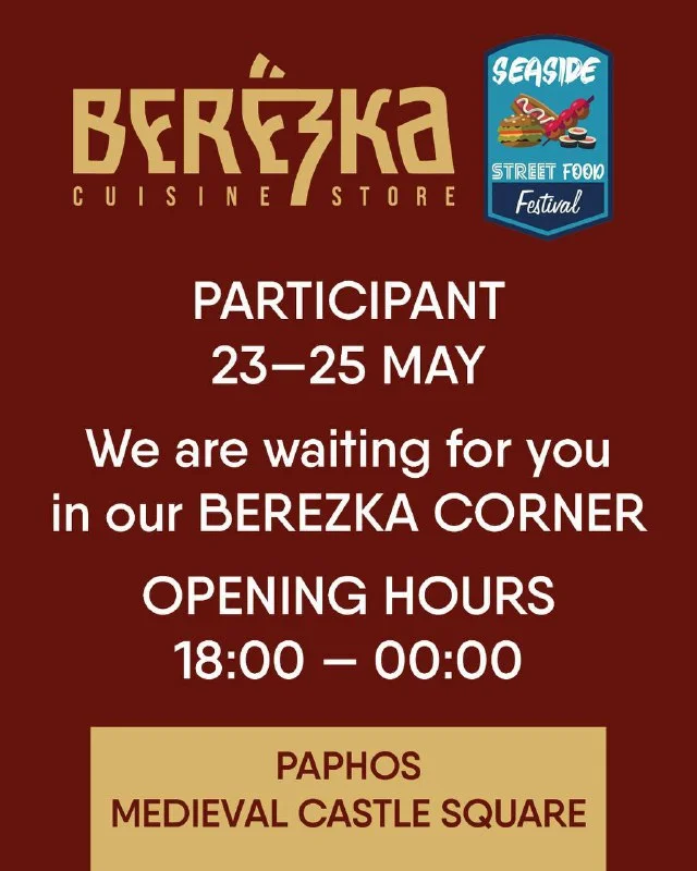 Berezka Store & Cuisine принимает участие в Фестивале Уличной еды в Пафосе в этот уикенд 23-25 мая!