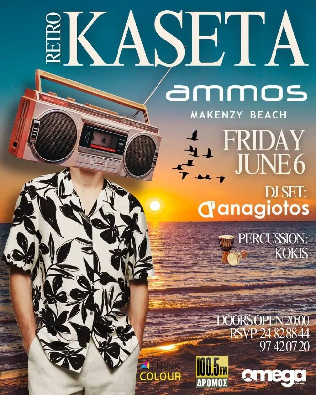 🔈 6 июня на Ammos Beach Bar включаем ретропульт и летим в золотую эру 80-х, 90-х, 00-х!** Готовьтесь к ночи, где плееры съедают кассеты, а танцы не знают границ!