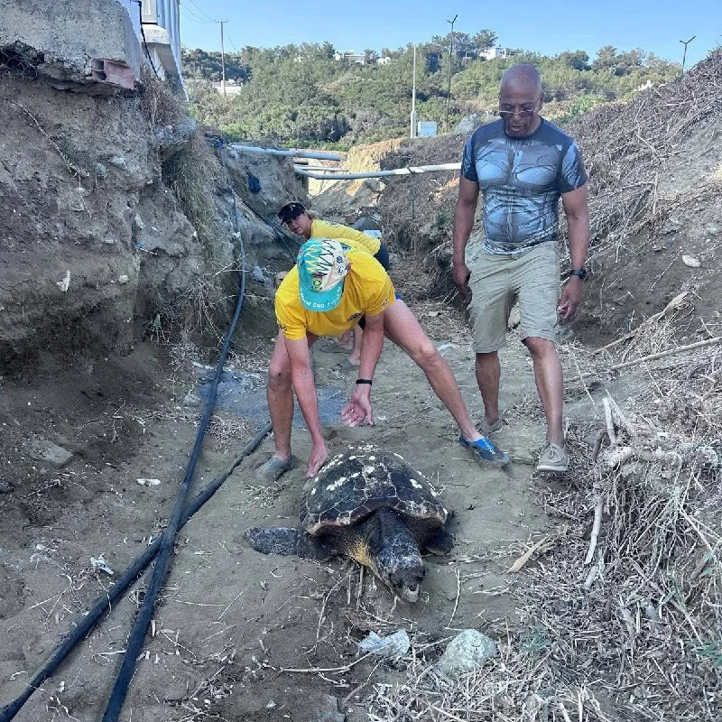 2. Перевернулась в овраге — Шлемоносную черепаху спасли в Каршияке, где она перевернулась. Команда помогла ей вернуться на пляж.