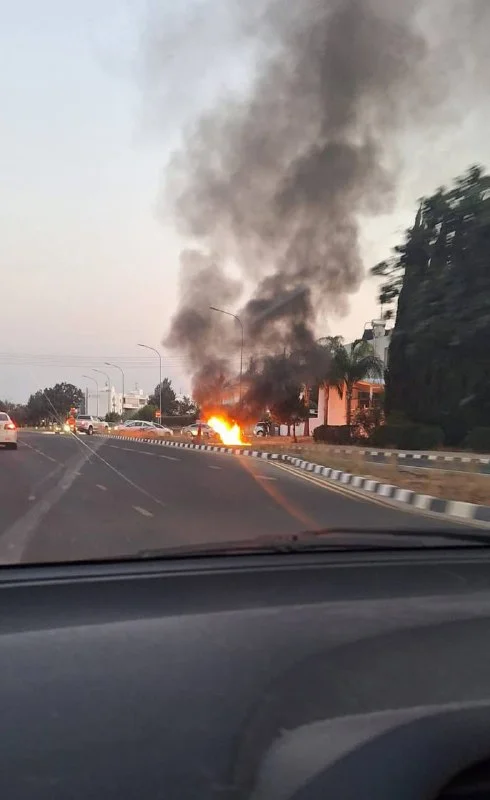 🔊 На дороге к Анфуполи в Лакатамии загорелся мотоцикл. Движение довольно интенсивное.