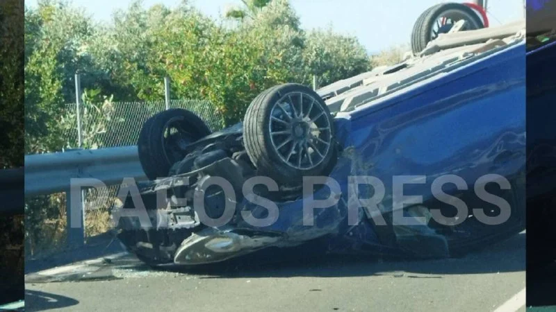 🔊 ДТП в Пафосе: Переворот автомобиля на многолюдной дороге без пострадавших