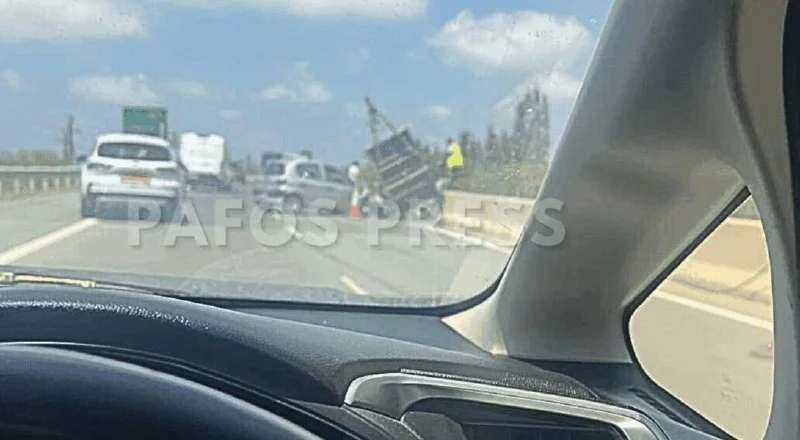 В Пафосе, 5 августа 2025 года, произошло ДТП на шоссе Лимассол – Пафос, недалеко от выезда на Агия Маринуда. Автомобиль, движущийся в сторону Пафоса, столкнулся с предупреждающим знаком о дорожных работах, установленным в правой полосе, в результате чего перевернулся и остановился на разделительной полосе.