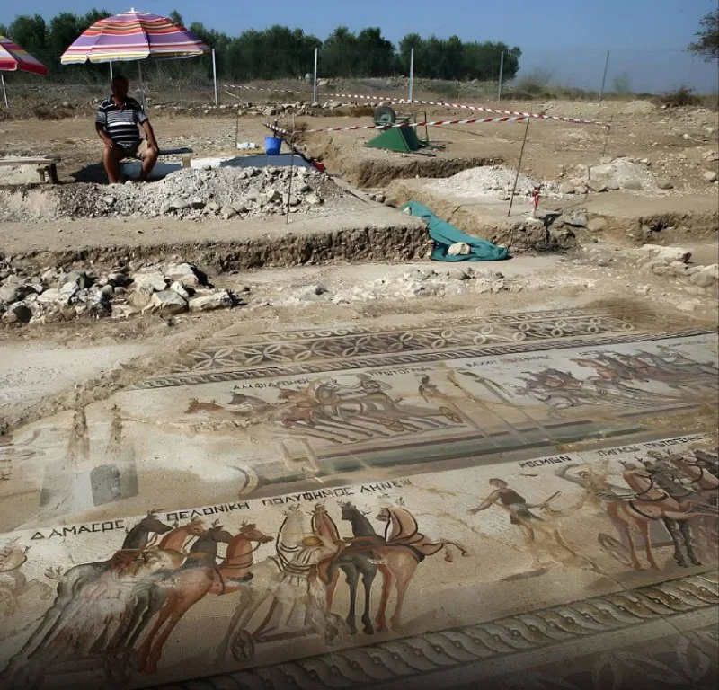 🔊 Уникальная находка на Кипре: 1700-летняя мозаика раскрывает детали римских гонок на колесницах