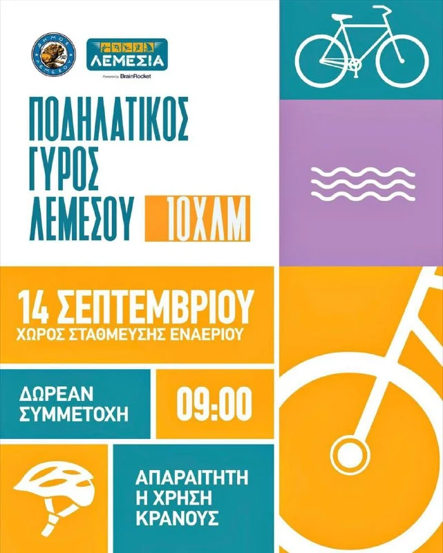 14 сентября опытные и начинающие велосипедисты, семьи и группы примут участие в велотуре по Лимассолу.
