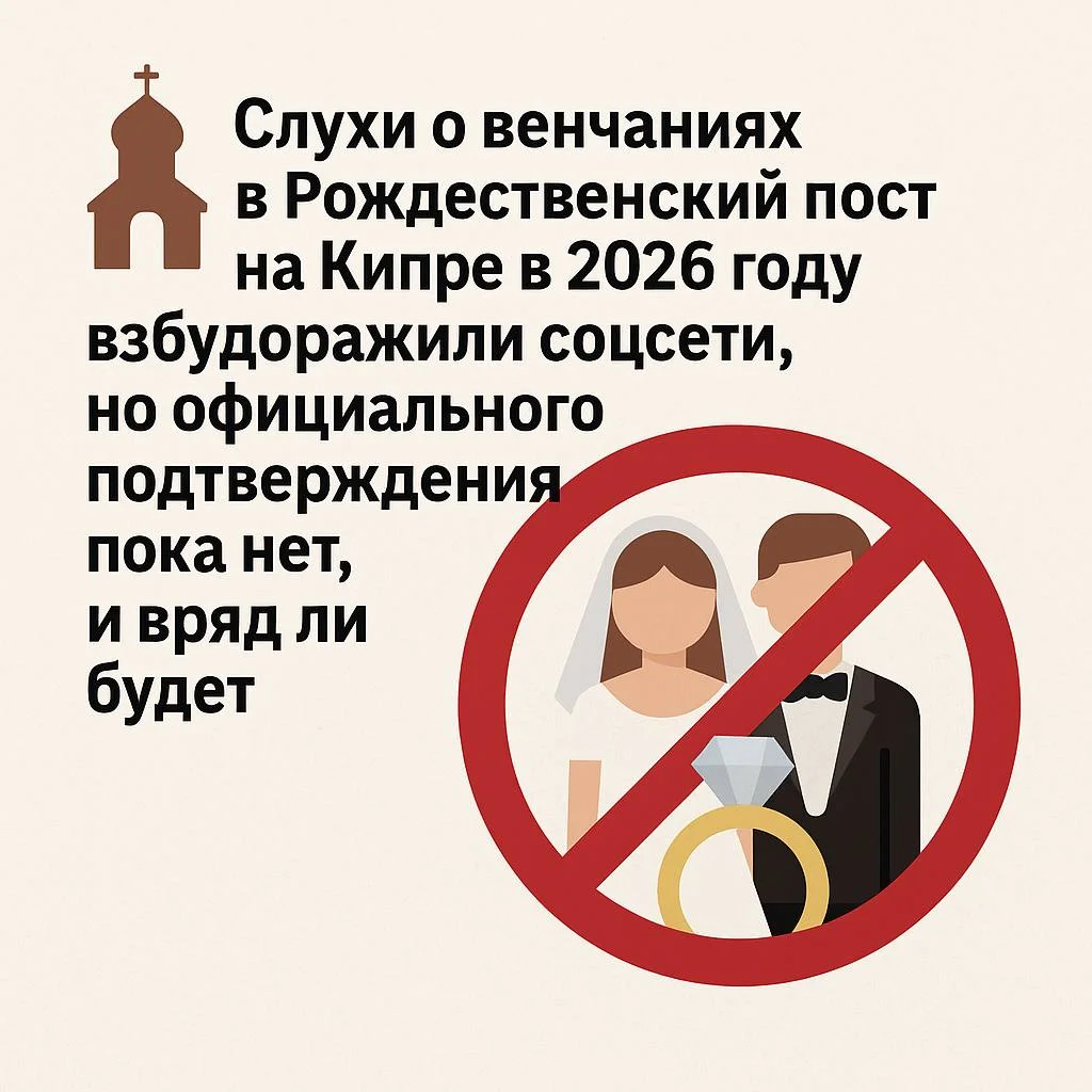 ⛪ Слухи о венчаниях в Рождественский пост на Кипре в 2026 году взбудоражили соцсети, но официального подтверждения пока нет, и вряд ли будет.