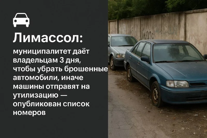 🚗 Лимассол: муниципалитет даёт владельцам 3 дня, чтобы убрать брошенные автомобили, иначе машины отправят на утилизацию — опубликован список номеров