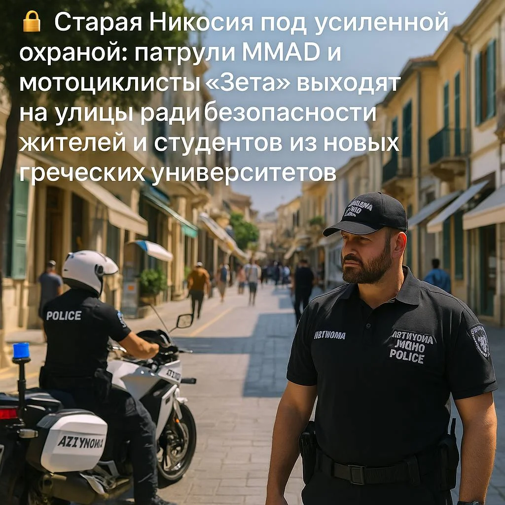 👮 Старая Никосия под усиленной охраной: патрули MMAD и мотоциклисты «Зета» выходят на улицы ради безопасности жителей и студентов из новых греческих университетов