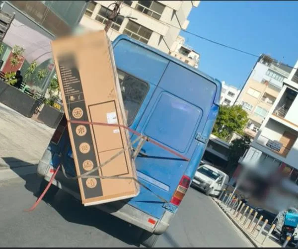 В Никосии очевидцы сняли на фото фургон, водитель которого попытался перевезти большой холодильник крайне опасным способом.