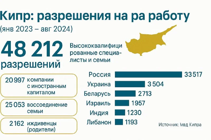 🇨🇾 Кипр бьёт рекорд по числу выданных разрешений на работу для иностранцев: более 48 000 специалистов за полтора года