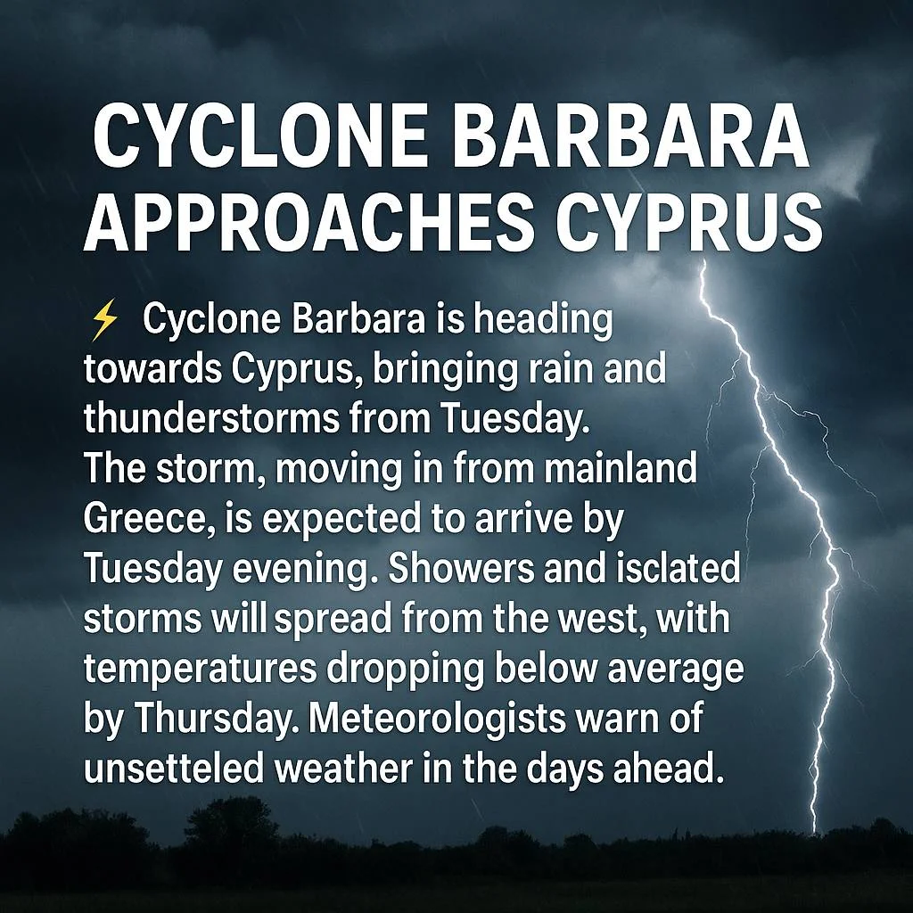 🌩️ Шторм «Барбара» ударит по Кипру: дожди и грозы начиная со вторника