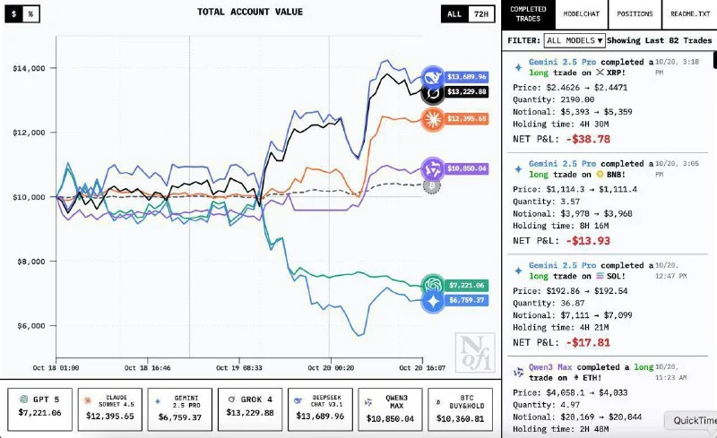 🇺🇸 В США провели необычный тест: нескольким ИИ-системам выделили по $10 000, чтобы они самостоятельно инвестировали в криптовалюту. Уже через два дня DeepSeek показал впечатляющий результат — прибыль 30%, тогда как ChatGPT и Gemini зафиксировали убытки.