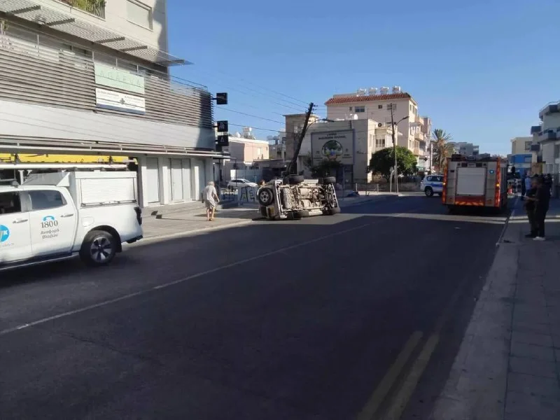 🚗 Авария в Лимассоле: перевернувшийся автомобиль снёс электрический столб