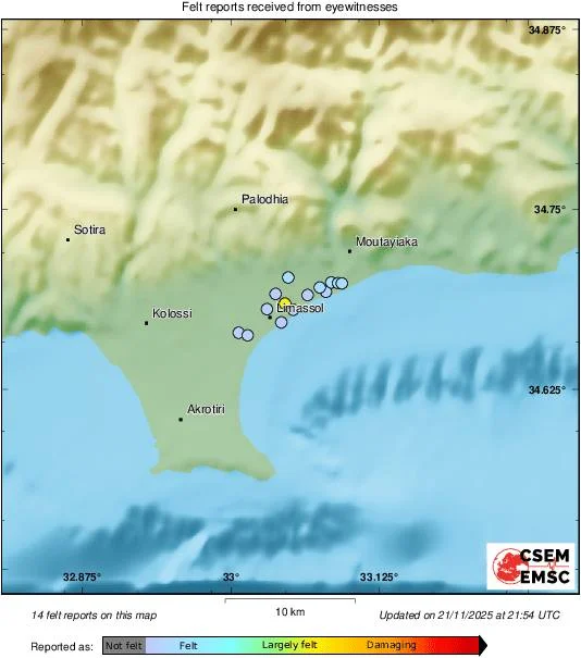🔊 В Лимассоле зафиксировали новое землетрясение: толчок почувствовали поздно вечером
