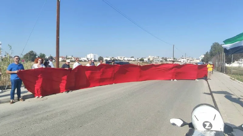 На месте акции прошёл протест, организованный Альянсом против крайне правых. Участники — общественные организации, активисты и депутаты АКЭЛ — развернули красное полотно, символизирующее кровь в Газе, и скандировали «Свобода Палестине».