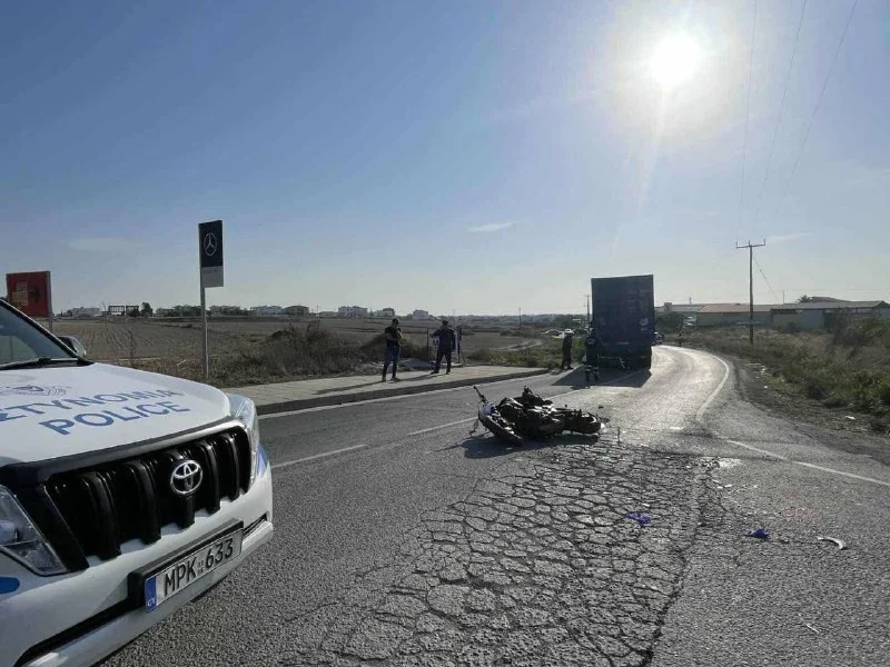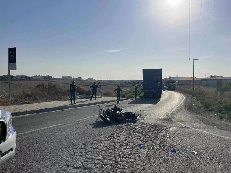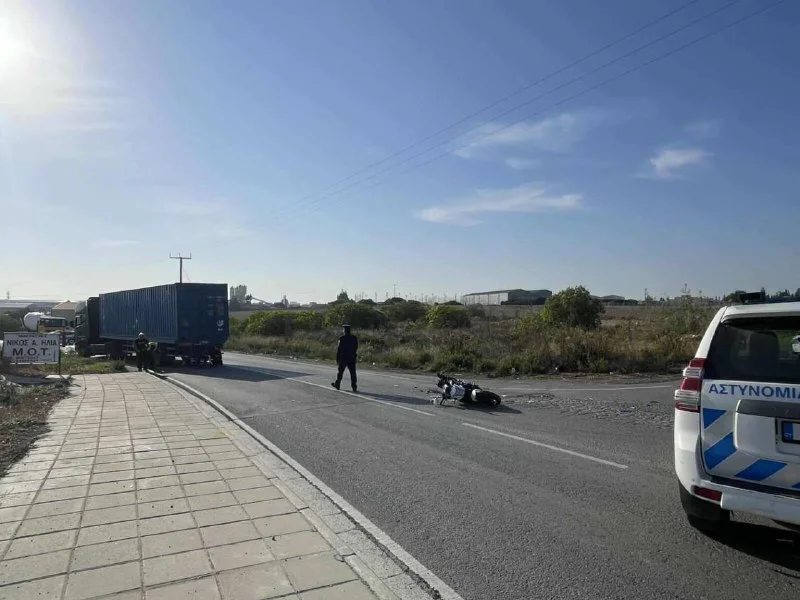 🚨 ДТП в Ларнаке: мотоциклист врезался в грузовик с контейнером и оказался в больнице