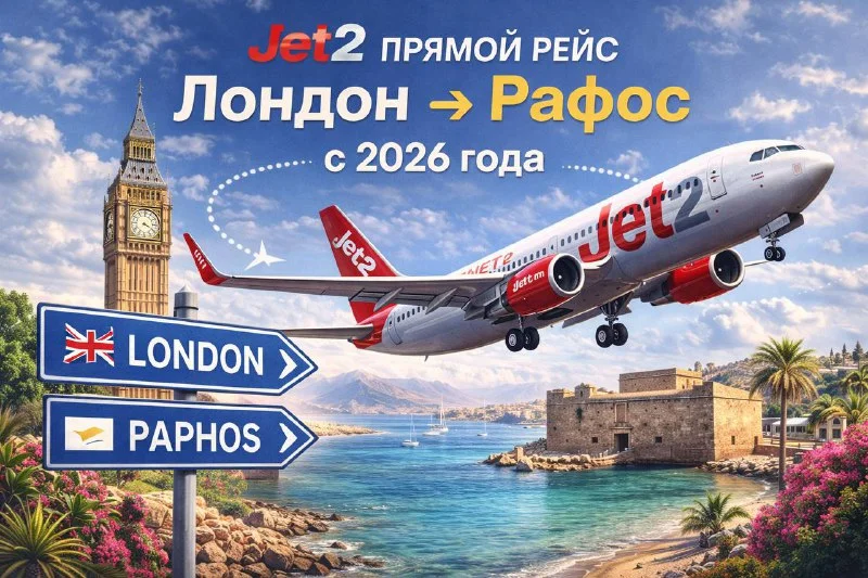 Хорошие новости для Пафоса и британских туристов. Авиакомпания Jet2 объявила о запуске нового прямого рейса из Лондона (Гатвик) в Пафос с весны 2026 года.