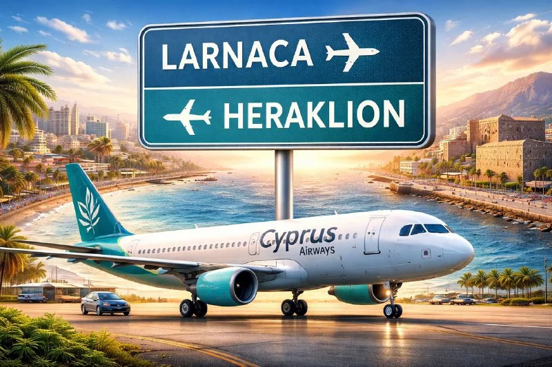 Cyprus Airways запустила прямое авиасообщение между Ларнакой и Ираклионом (Крит) — ещё один шаг к укреплению связей между Кипром и Грецией.