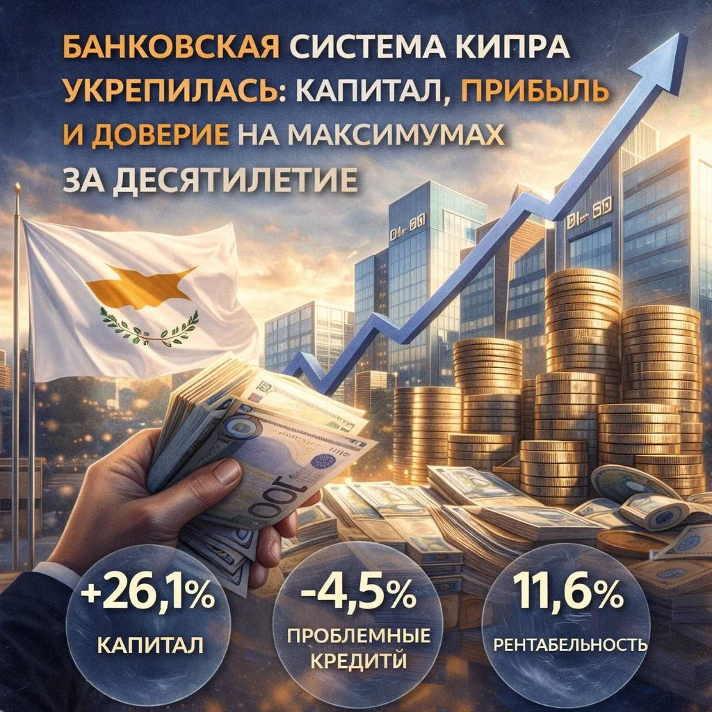 📊 Банковская система Кипра укрепилась: капитал, прибыль и доверие на максимумах за десятилетие