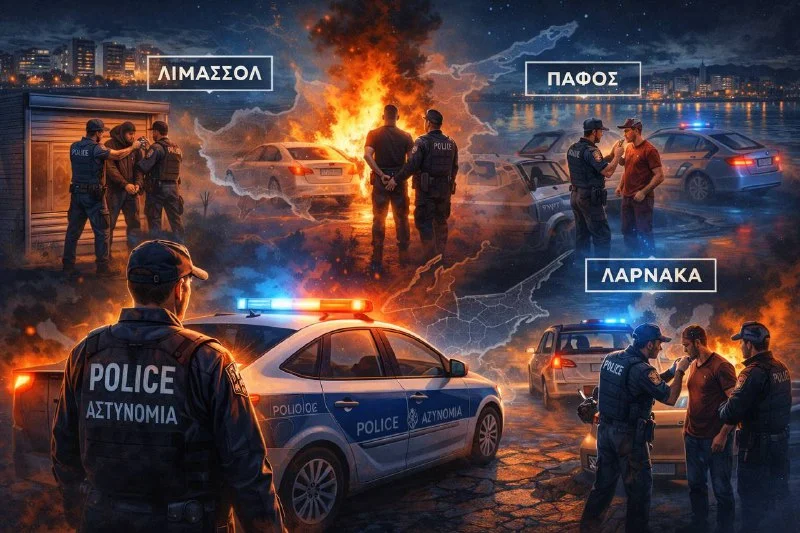 🔊От краж до поджогов: восемь задержаний за одну ночь по всему Кипру