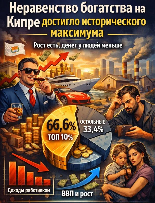 🔊 Неравенство богатства на Кипре достигло исторического максимума — рост есть, денег у людей меньше